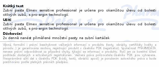 Zubní pasta Elmex sensitive professional je určena pro okamžitou úlevu od bolesti citlivých zubů, s pro-argin technologií.