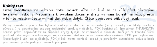 Emla znecitlivuje na krátkou dobu povrch kůže. Používá se na kůži před některými lékařskými výkony. Napomáhá k vyvolání dočasné ztráty vnímání bolesti na kůži, přesto v tomto místě můžete vnímat tlak nebo dotyk. Čtěte pozorně příbalový leták.