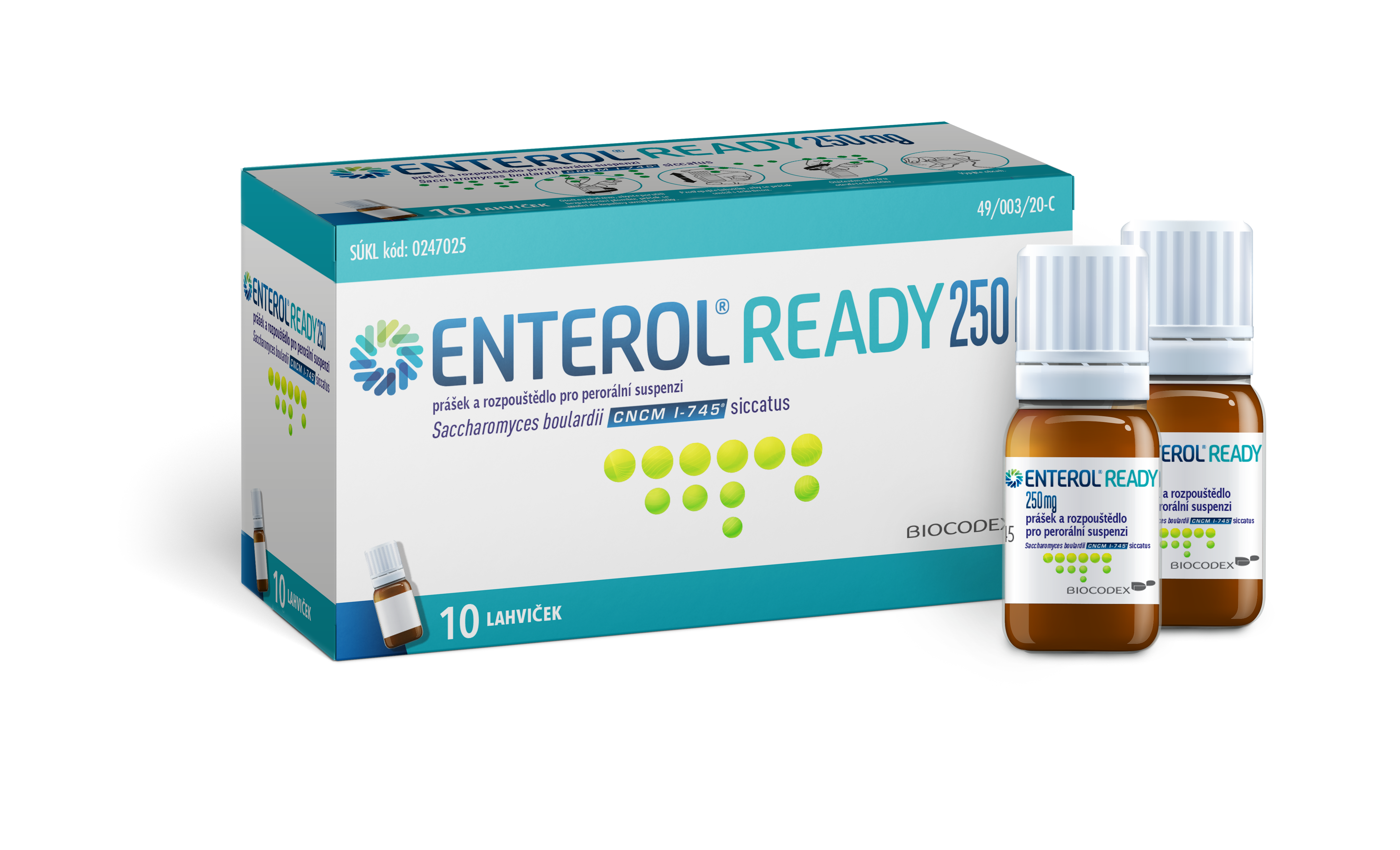 Přípravek Enterol Ready obsahuje jako léčivou látku mikroorganismus Saccharomyces boulardii kmen CNCM I-745, který patří do skupiny protiprůjmových mikroorganismů, působí také prostřednictvím výživného a imunostimulačního účinku na střevní sliznici. Čtěte pozorně příbalový leták.