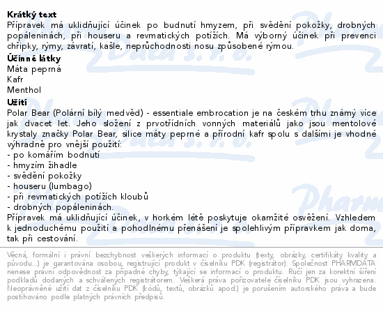 Přípravek má uklidňující účinek po budnutí hmyzem, při svědění pokožky, drobných popáleninách, při houseru a revmatických potížích. Má výborný účinek při prevenci chřipky, rýmy, závratí, kašle, neprůchodnosti nosu způsobené rýmou.