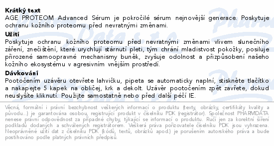 AGE PROTEOM Advanced Sérum je pokročilé sérum nejnovější generace. Poskytuje ochranu kožního proteomu před nevratnými změnami.