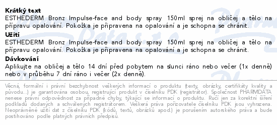 ESTHEDERM Bronz Impulse-face and body spray 150ml sprej na obličej a tělo na přípravu opalování. Pokožka je připravena na opalování a je schopna se chránit.