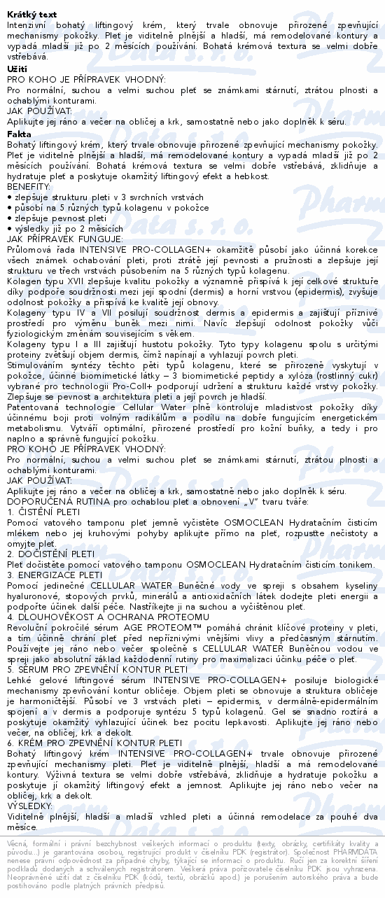 Intenzivní bohatý liftingový krém, který trvale obnovuje přirozené zpevňující mechanismy pokožky. Pleť je viditelně plnější a hladší, má remodelované kontury a vypadá mladší již po 2 měsících používání. Bohatá krémová textura se velmi dobře vstřebává.