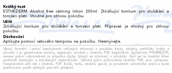 ESTHEDERM Alcohol free calming lotion 200ml: Zklidňující tonikum pro dočištění a tonizaci pleti. Vhodné pro citlivou pokožku.