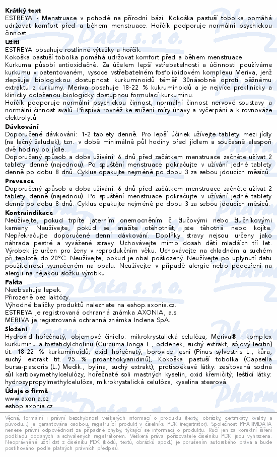 ESTREYA Menstruace v pohodě tbl.20