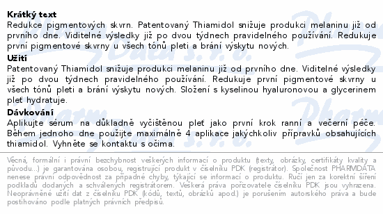 Redukce pigmentových skvrn. Patentovaný Thiamidol snižuje produkci melaninu již od prvního dne. Viditelné výsledky již po dvou týdnech pravidelného používání. Redukuje první pigmentové skvrny u všech tónů pleti a brání výskytu nových.