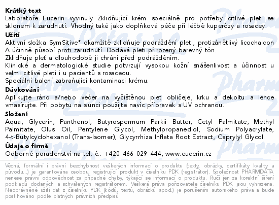 Laboratoře Eucerin vyvinuly Zklidňující krém speciálně pro potřeby citlivé pleti se sklonem k zarudnutí. Vhodný také jako doplňková péče při léčbě kuperózy a rosacey.
