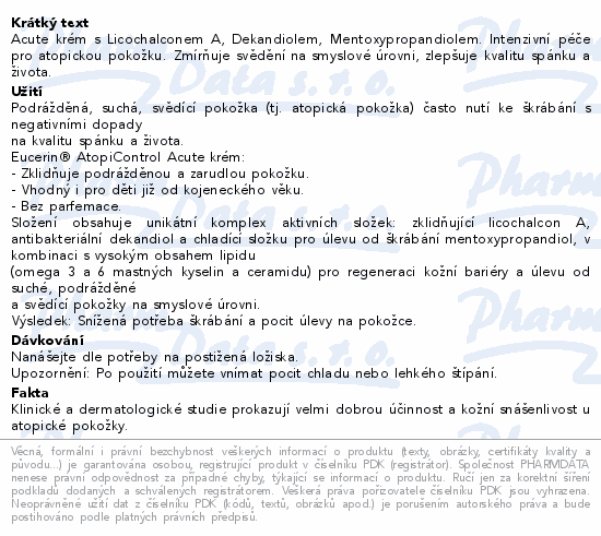 Acute krém s Licochalconem A, Dekandiolem, Mentoxypropandiolem. Intenzivní péče pro atopickou pokožku. Zmírňuje svědění na smyslové úrovni, zlepšuje kvalitu spánku a života.