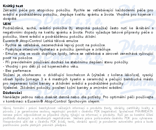 EUCERIN AtopiControl lehká tělová emulze 200ml