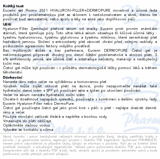 Eucerin set Promo 2021 HYALURON-FILLER+DERMOPURE inovativní a účinná řada produktů pro problematickou pleť se sklonem k nedokonalostem a akné, kterou lze používat buď samostatně, nebo spolu s léky na akné jako doplňkovou péči.