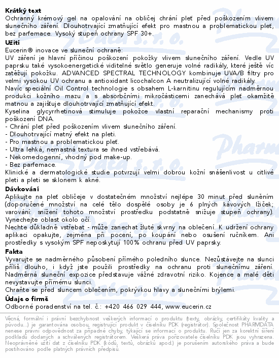 Eucerin SUN gel na obl Oil Control SPF30 50ml