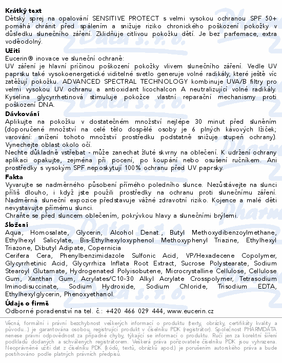 Dětský sprej na opalování SENSITIVE PROTECT s velmi vysokou ochranou SPF 50+ pomáhá chránit před spálením a snižuje riziko chronického poškození pokožky v důsledku slunečního záření. Zklidňuje citlivou pokožku dětí. Je bez parfemace, extra voděodolný.