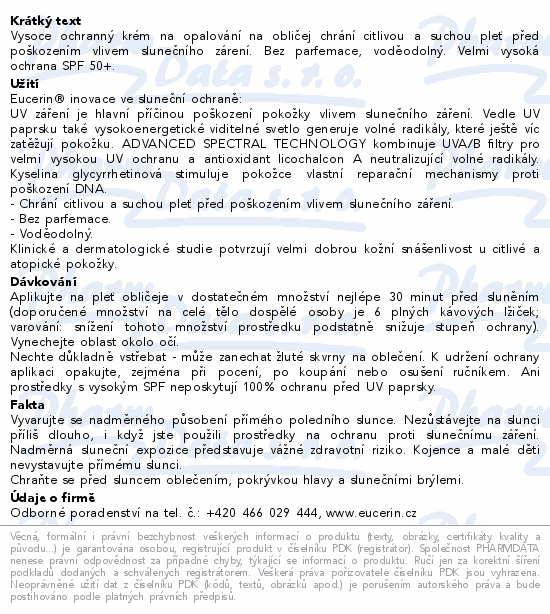 Eucerin SUN opalovací krém na obličej SPF50+50ml