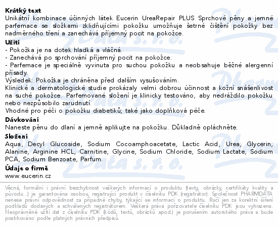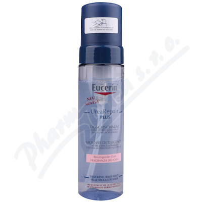 Unikátní kombinace účinných látek Eucerin UreaRepair PLUS Sprchové pěny a jemné parfemace se složkami zklidňujícími pokožku umožňuje šetrné čištění pokožky bez nadměrného tření a zanechává příjemný pocit na pokožce.