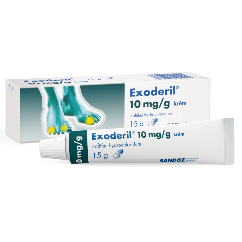 Přípravek Exoderil patří do skupiny léčiv zvaných dermatologika, antimykotika. Exoderil je antimykotický, protizánětlivý krém ke kožnímu podání. Jeho léčivou složkou je naftifin. Je účinný proti houbám, kvasinkám a plísním. Čtěte pozorně příbalový leták.