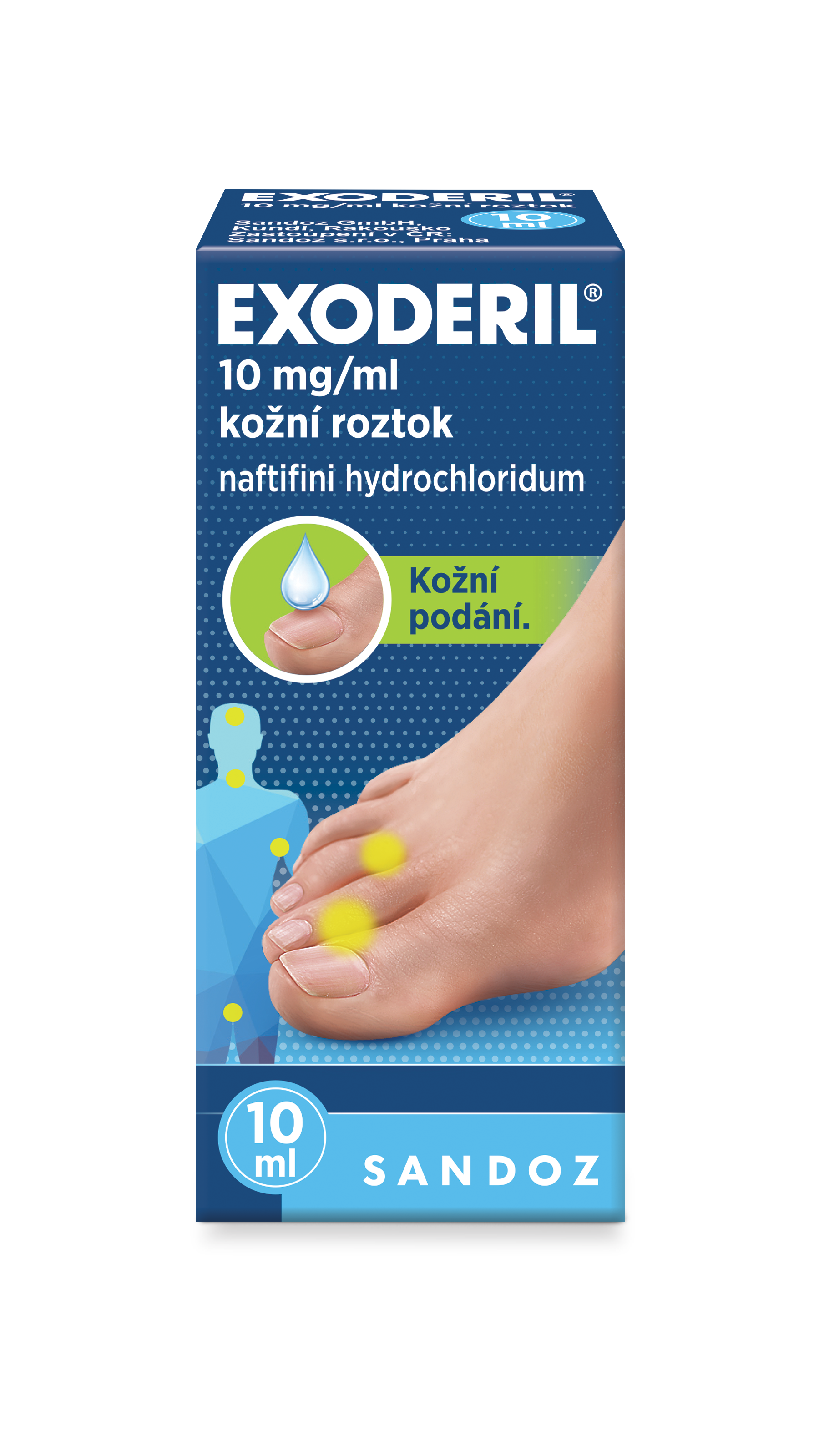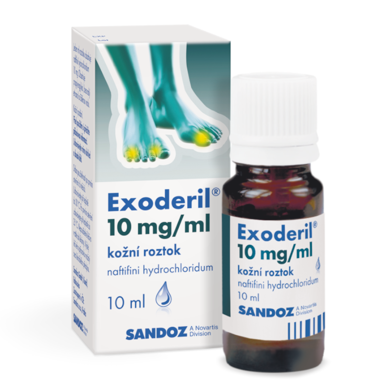 Exoderil® je antimykotický, protizánětlivý kožní roztok ke kožnímu podání. Jeho léčivou složkou je naftifin. Je účinný proti houbám, kvasinkám a plísním. Vedle účinku proti plísním má naftifin také antibakteriální účinek proti různým grampozitivním a gramnegativním organismům, které se obyčejně vyskytují ve spojení s plísňovým onemocněním.