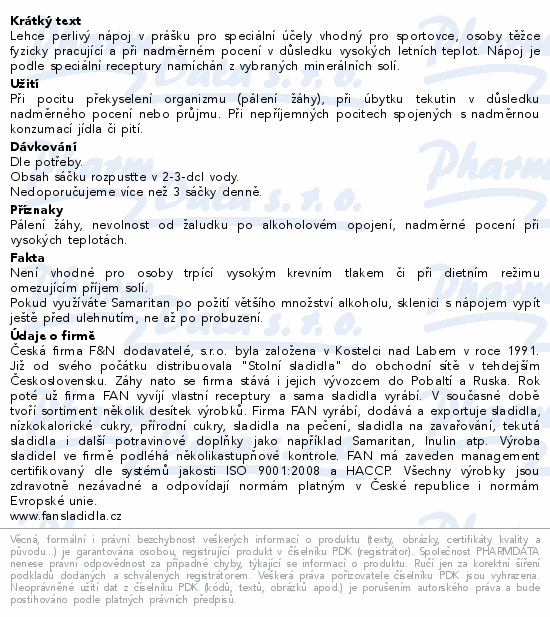 Lehce perlivý nápoj v prášku pro speciální účely vhodný pro sportovce, osoby těžce fyzicky pracující a při nadměrném pocení v důsledku vysokých letních teplot. Nápoj je podle speciální receptury namíchán z vybraných minerálních solí.