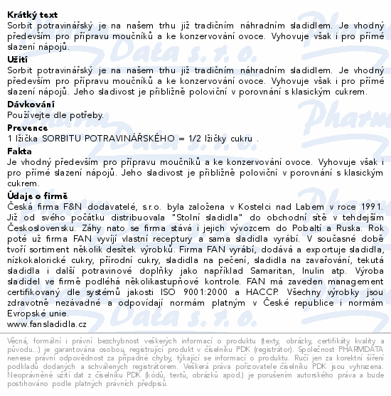 Fan sladidlo Sorbit potravinářský 100g