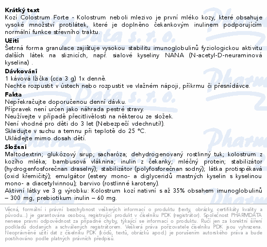 Kozí Colostrum Forte - Kolostrum neboli mlezivo je první mléko kozy, které obsahuje vysoké množství protilátek, které je doplněno čekankovým inulinem podporujícím normální funkce střevního traktu.
