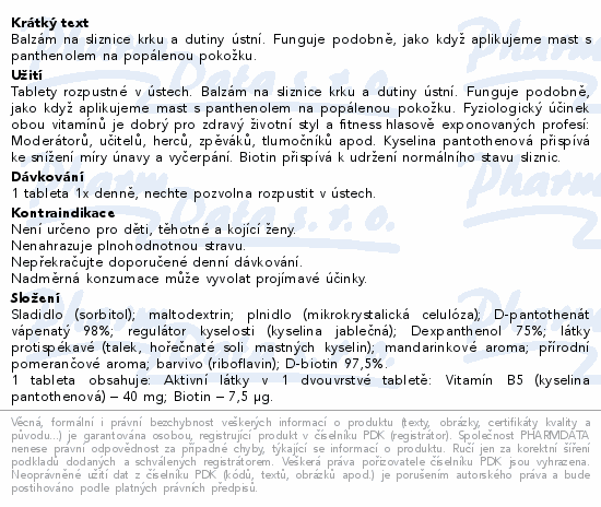 Balzám na sliznice krku a dutiny ústní. Funguje podobně, jako když aplikujeme mast s panthenolem na popálenou pokožku.