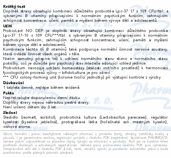 Doplněk stravy obsahující kombinaci důležitého probiotika Lpc-37 17 x 109 CFU/tbl. s vybranými B vitamíny přispívajícími k normálním psychickým funkcím, zahrnujícím schopnost koncentrace, učení, paměti a myšlení během vývoje dětí a adolescentů.