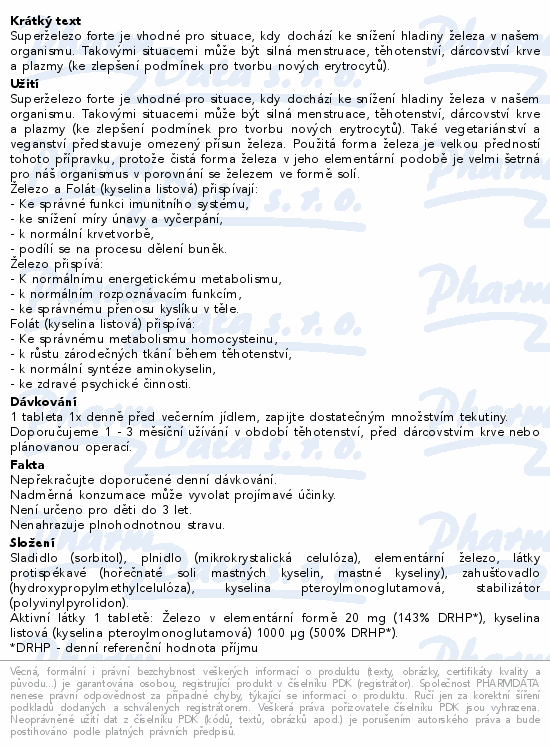 Superželezo forte je vhodné pro situace, kdy dochází ke snížení hladiny železa v našem organismu. Takovými situacemi může být silná menstruace, těhotenství, dárcovství krve a plazmy (ke zlepšení podmínek pro tvorbu nových erytrocytů).