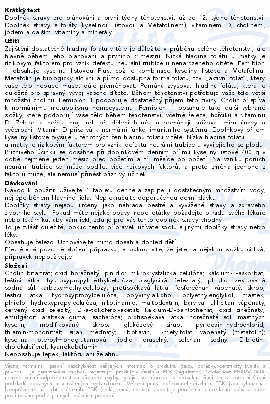 Femibion 1 Plánování a první týdny těhoten. tbl.28