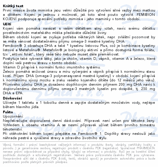První měsíce života miminka jsou velmi důležité pro vytvoření silné vazby mezi matkou a dítětem. Kojení je jednou z možností, jak toto silné pouto vytvořit. FEMIBION KOJENÍ podporuje speciální potřeby miminka i jeho maminky v tomto období.