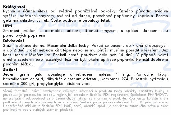 Rychlá a účinná úleva od svědivé podrážděné pokožky různého původu: svědivá vyrážka, poštípaní hmyzem, spálení od slunce, povrchové popáleniny, kopřivka. Forma gelu má chladivý účinek. Čtěte pozorně příbalový leták.