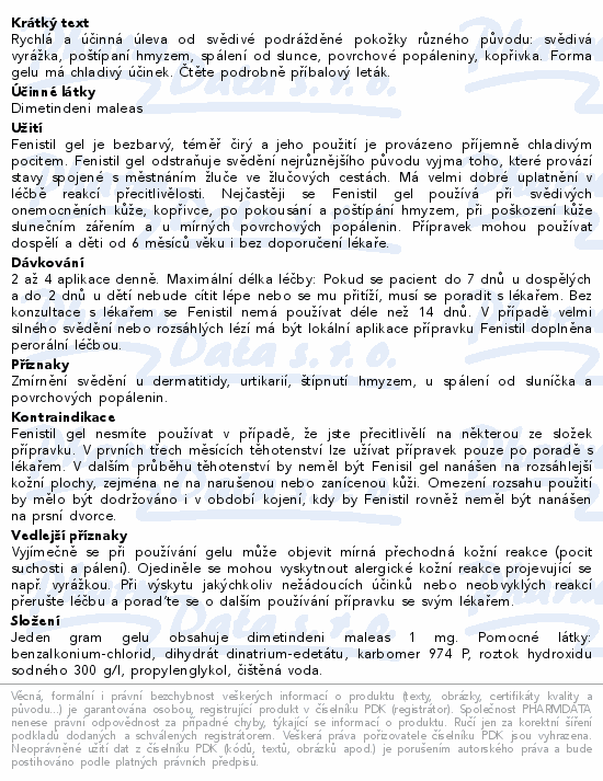 Rychlá a účinná úleva od svědivé podrážděné pokožky různého původu: svědivá vyrážka, poštípaní hmyzem, spálení od slunce, povrchové popáleniny, kopřivka. Forma gelu má chladivý účinek. Čtěte pozorně příbalový leták.
