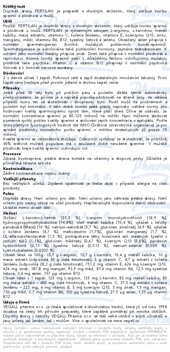 Doplněk stravy FERTILAN je preparát s vhodným složením, který udržuje tvorbu spermií a plodnost u mužů.