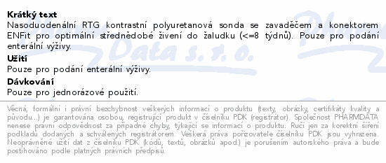 Nasoduodenální RTG kontrastní polyuretanová sonda se zavaděčem a konektorem ENFit pro optimální střednědobé živení do žaludku (