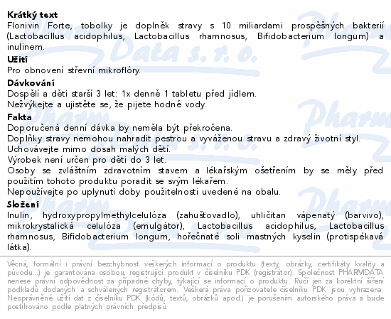Flonivin Forte, tobolky je doplněk stravy s 10 miliardami prospěšných bakterií (Lactobacillus acidophilus, Lactobacillus rhamnosus, Bifidobacterium longum) a inulinem.