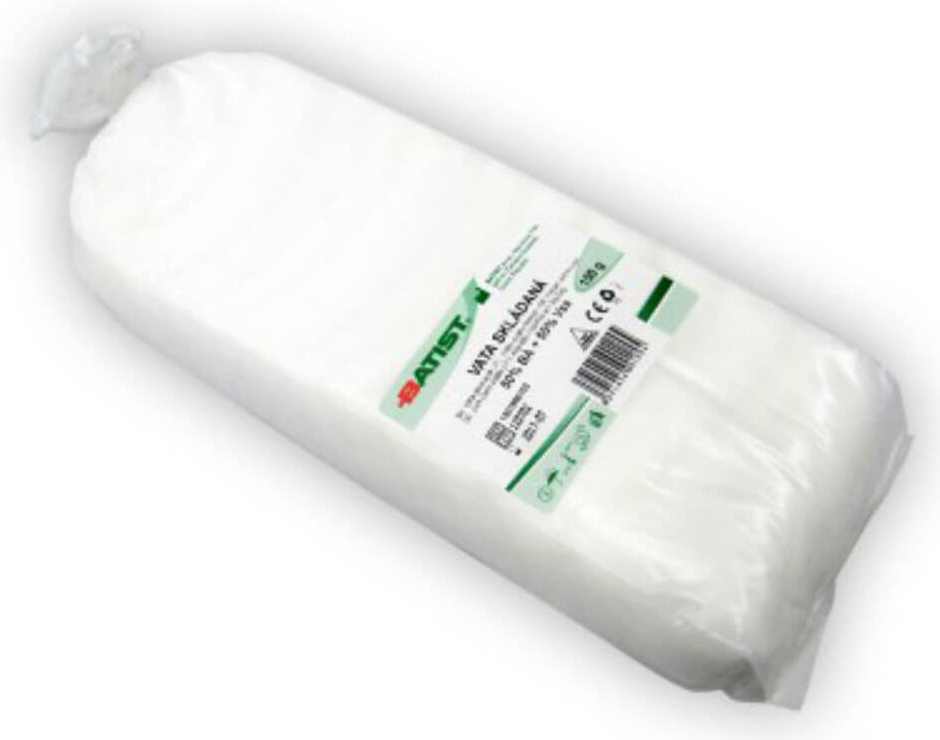 Vata skládaná se používá ke kosmetickým, hygienickým a lékařským účelům. Vata je vyrobena ze směsi bavlna/viskóza, je měkká, kvalitně vyčesaná s příjemným omakem a zvýšenou savostí. Výrobek je balen v PE sáčku.