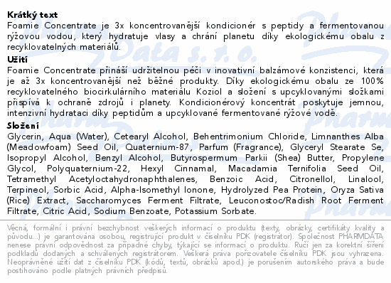 Foamie Concentrate je 3x koncentrovanější kondicionér s peptidy a fermentovanou rýžovou vodou, který hydratuje vlasy a chrání planetu díky ekologickému obalu z recyklovatelných materiálů.
