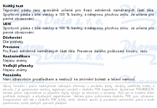 Tejpovací pásky jsou speciálně určené pro fixaci extrémně namáhaných částí těla. Sportovní páska z bílé viskózy a 100 % bavlny, s nálepnou plochou zinku. Je určena pro pevné obvazování.