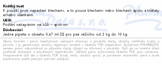 K použití proti napadení blechami, a to pouze blechami nebo blechami spolu s klíšťaty a/nebo všenkami.