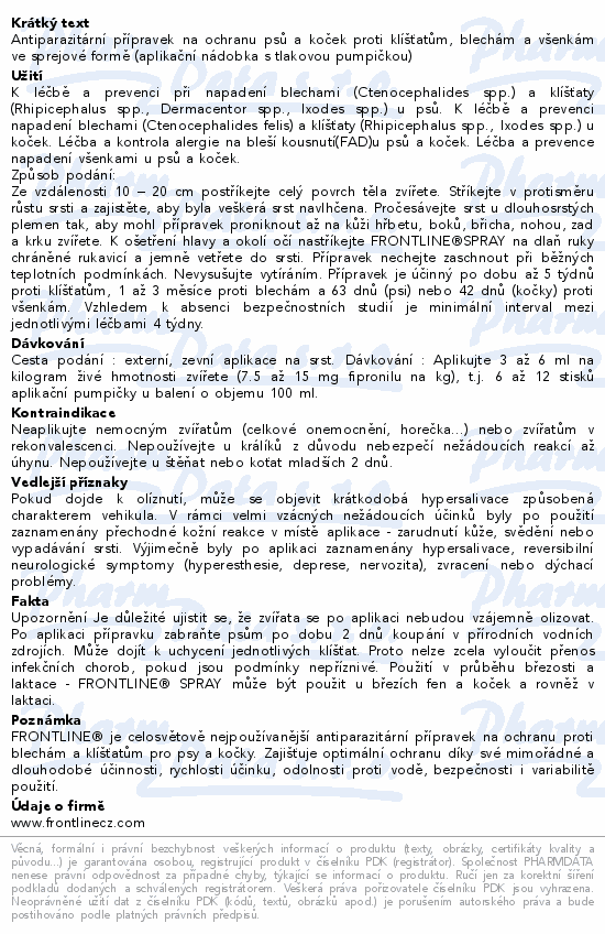 Frontline spray 2.5mg/ml kožní sprej roztok 100ml