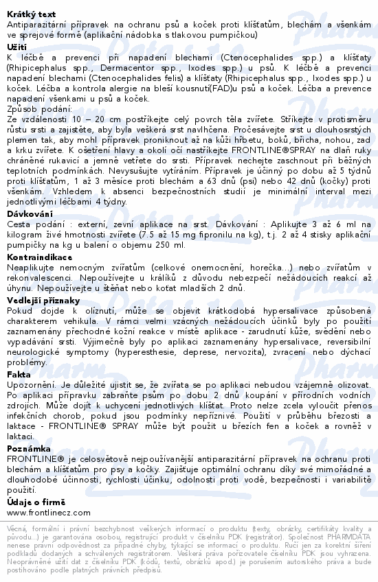 Frontline spray 2.5mg/ml kožní sprej roztok 250ml