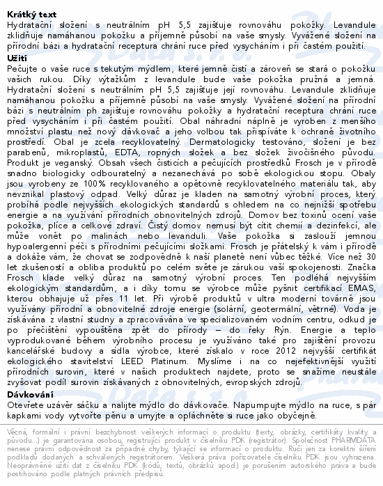 Frosch Tekuté mýdlo Levandule náhr.náplň EKO 500ml