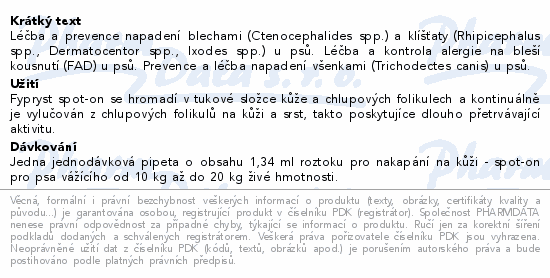 Fypryst 134mg spot-on pro psy 1x1.34ml