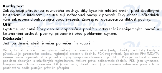 Zabezpečují přirozenou rovnováhu pochvy, díky kyselině mléčné chrání před škodlivými bakteriemi a infekcemi, neutralizují nežadoucí pachy v pochvě. Díky obsahu přírodních vůní zabezpečí dlouhotrvající pocit svěžesti. Zabezpečí dostatečnou vlhkost pochvy.