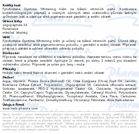 Fytofontana Gyntima Whitening krém na bělení intimních partií. Kombinace biotechnologických peptidů a vzácných účinných látek rostlinného původu šetrným způsobem bělí a ošetřuje silně pigmentované genitální a anální oblasti.