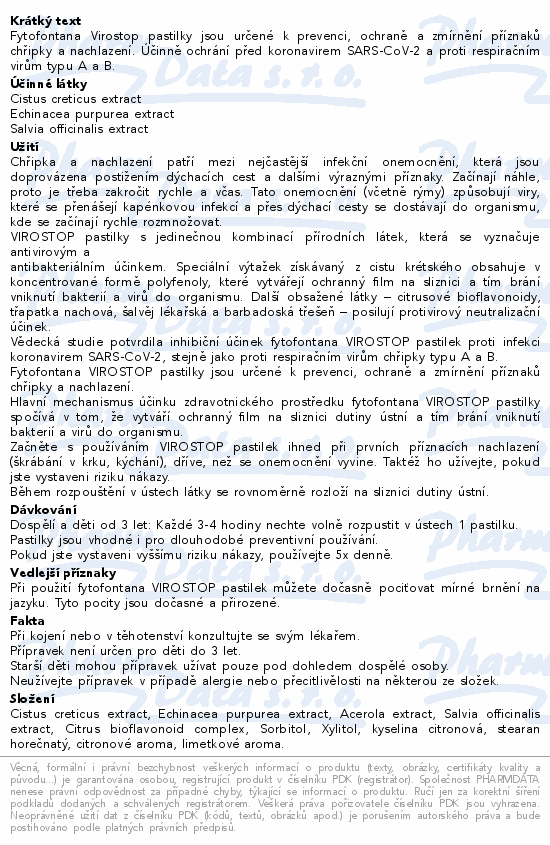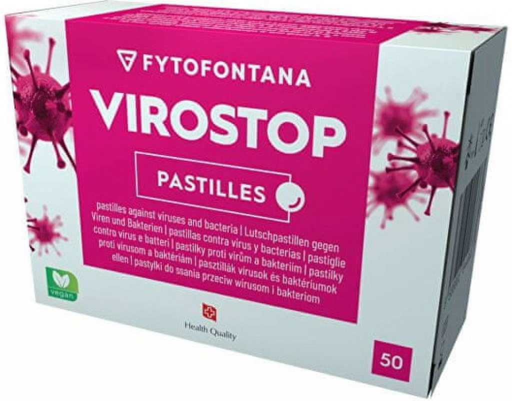 Fytofontana Virostop pastilky jsou určené k prevenci, ochraně a zmírnění příznaků chřipky a nachlazení. Účinně ochrání před koronavirem SARS-CoV-2 a proti respiračním virům typu A a B.