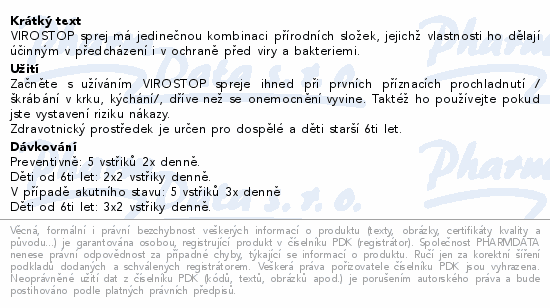 VIROSTOP sprej má jedinečnou kombinaci přírodních složek, jejichž vlastnosti ho dělají účinným v předcházení i v ochraně před viry a bakteriemi.