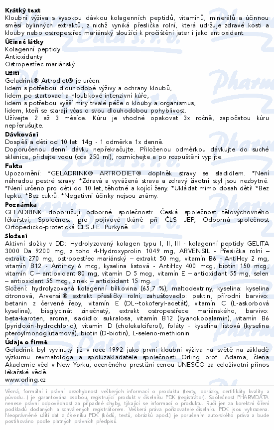 Geladrink Artrodiet práškový nápoj jahoda 420g