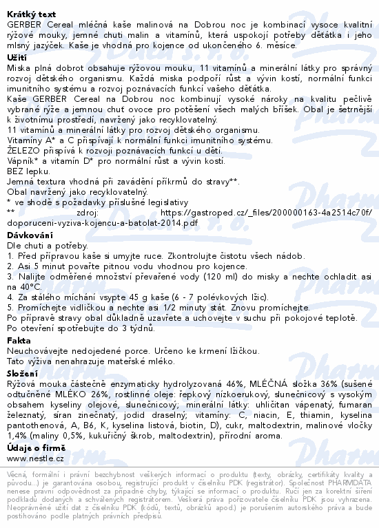 Gerber Cereal Ml.kaše na dobrou noc malin.230g 6m+