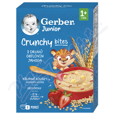 Gerber Junior nemléčná kaše jahodová s křupavými kousky je lahodnou kombinací 8 druhů obilovin doplněných o ovocné vločky, křupavé kousky obilovin, řadu vitamínů a minerální látky. Bez přidaného cukru. Kaše je určena pro děti od ukončeného 1. roku.