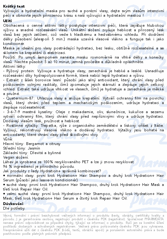 Vyživující a hydratační maska pro suché a porézní vlasy, dejte svým vlasům intenzivní péči a obnovte jejich přirozenou krásu s naší vyživující a hydratační maskou !