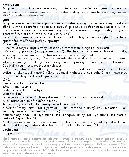 Šampon pro suché a oslabené vlasy, dopřejte svým vlasům nezbytnou hydrataci a výživu s naším šamponem pro suché a oslabené vlasy, který zanechá vaše vlasy hebké, zářivé a snadno rozčesatelné!
